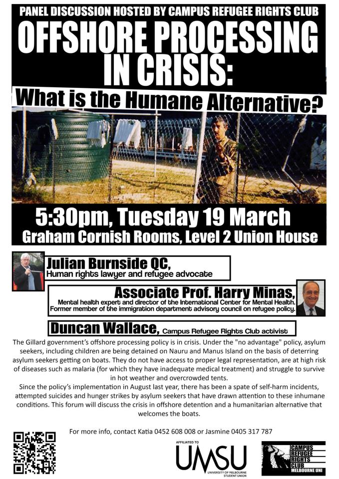 Speakers include human rights lawyer Julian Burnside QC and mental heath expert Assoc Prof Harry Minas.